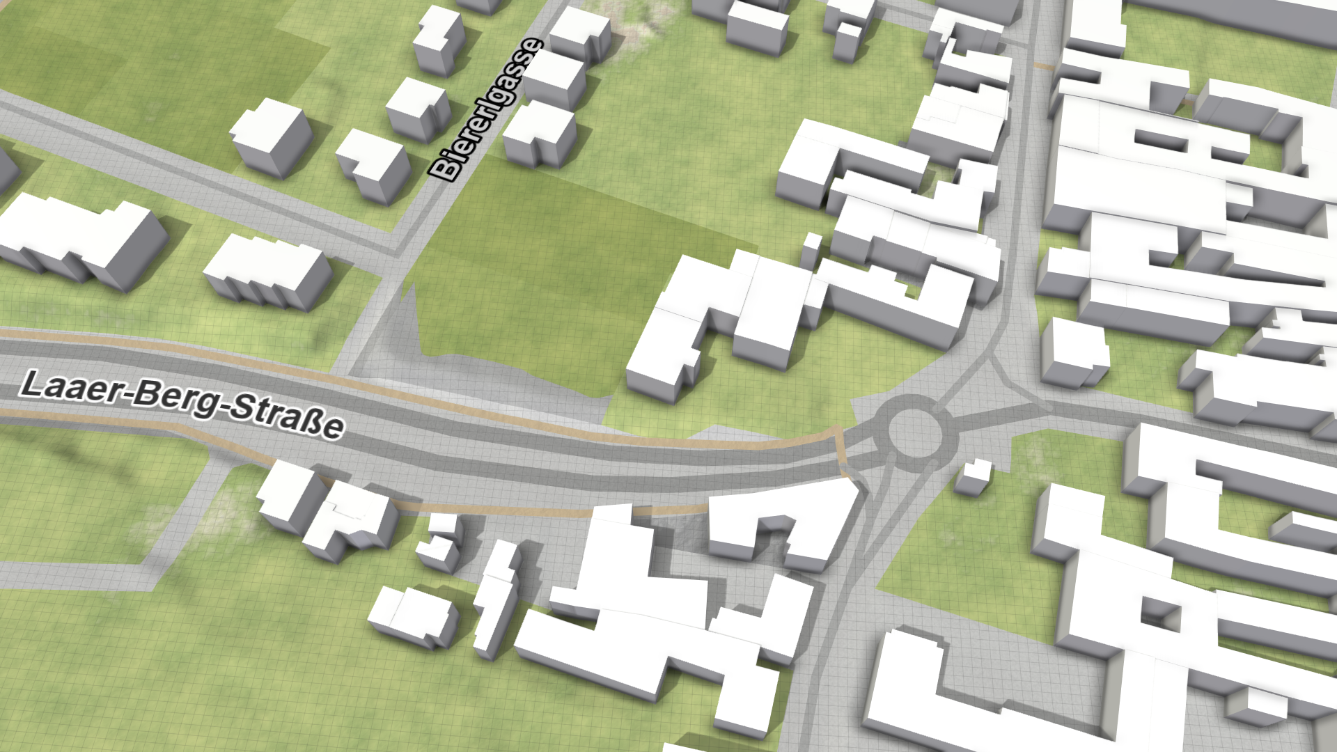 - After applying your changes with the Run button, the building models are loaded. This can take some time because all 3D models have to be matched with the existing building footprints to replace the default box models by the new ones.