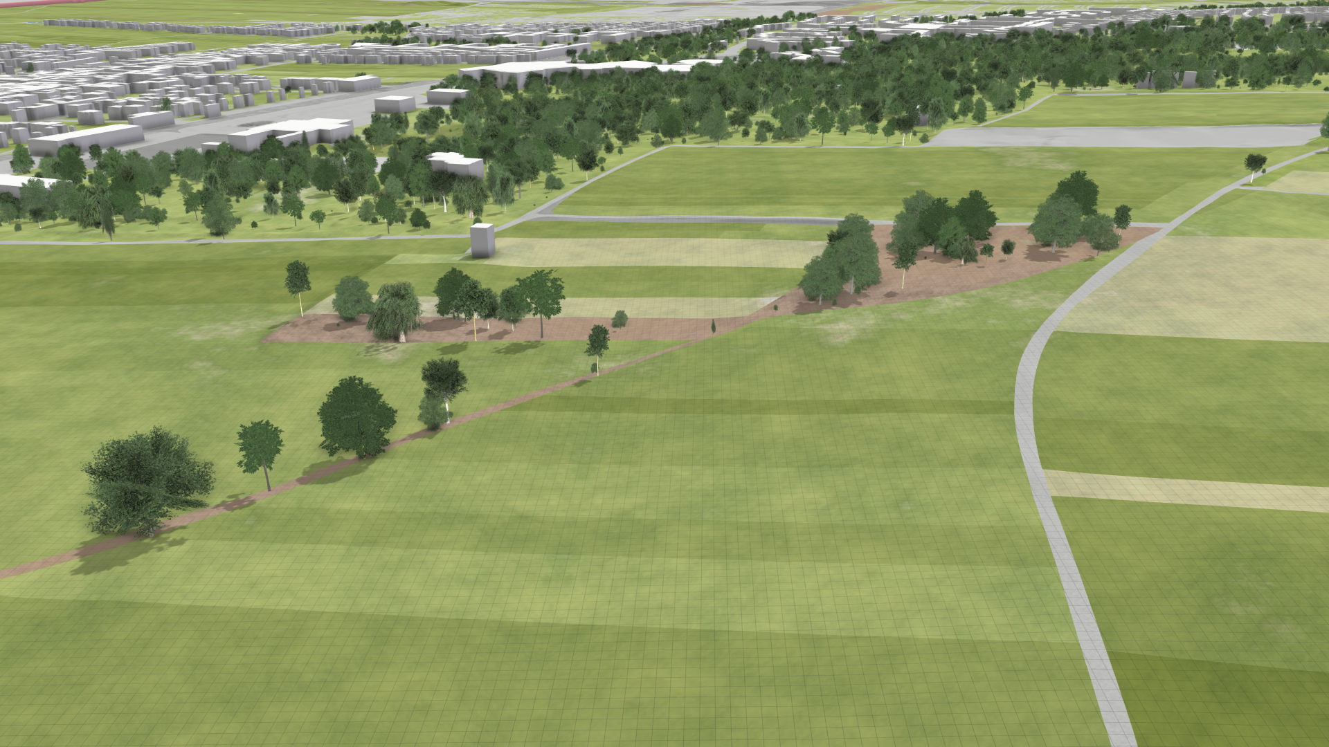 The decorative domain defines a larger area where data can be loaded with a coarse resolution to provide a visual context around the maximum simulation domain. For this purpose, an optional decoration raster file can be loaded to provide terrain data in areas where the main terrain is not available.