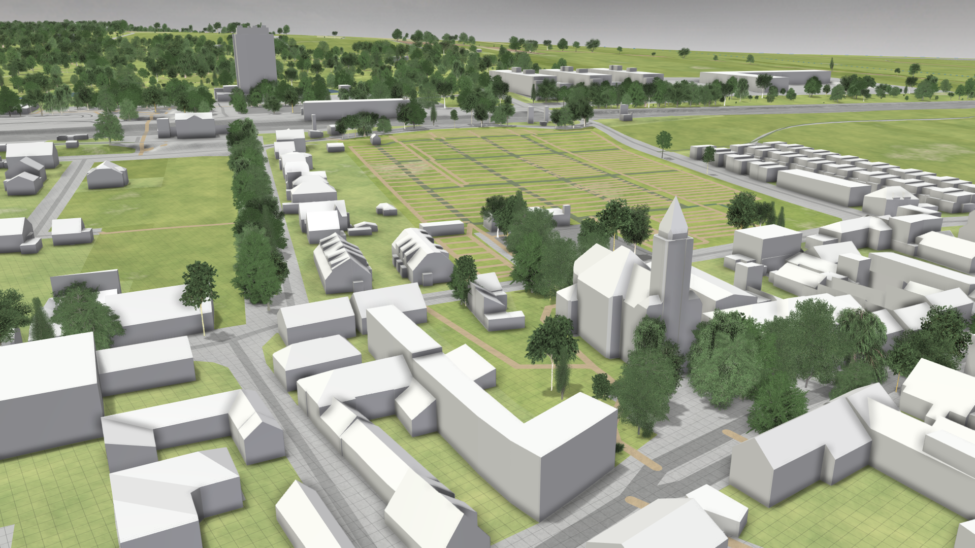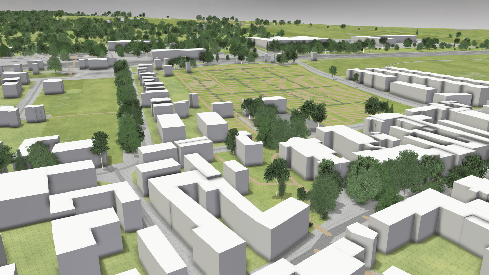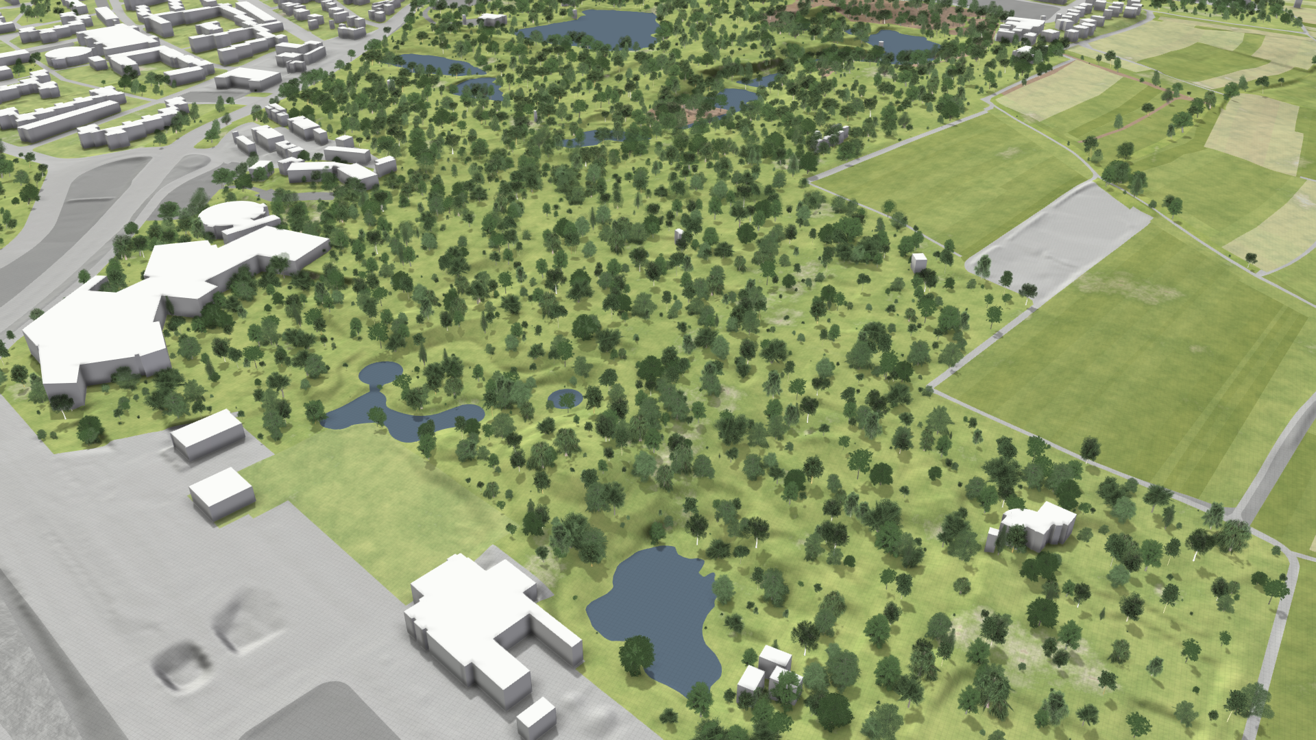 Buildings play a crucial role in river flood and stormwater simulations. They act as physical barriers for water flow, intercept rain, and provide visual context.