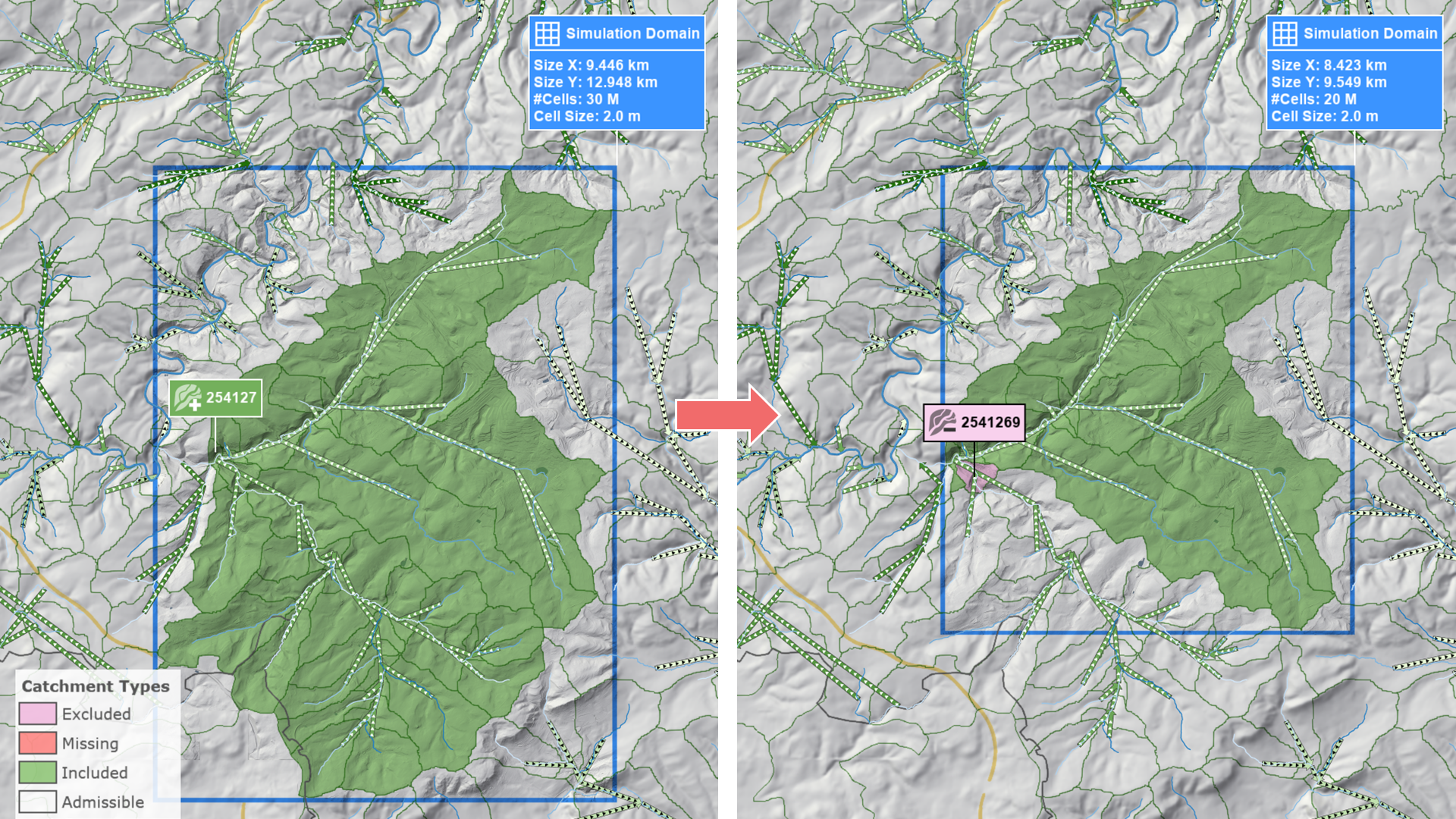 Purpose and Effect: This action refines a simulation domain initially created using the Catchment Inclusion action. Consequently, this action is only supported for base models that include a catchment network.