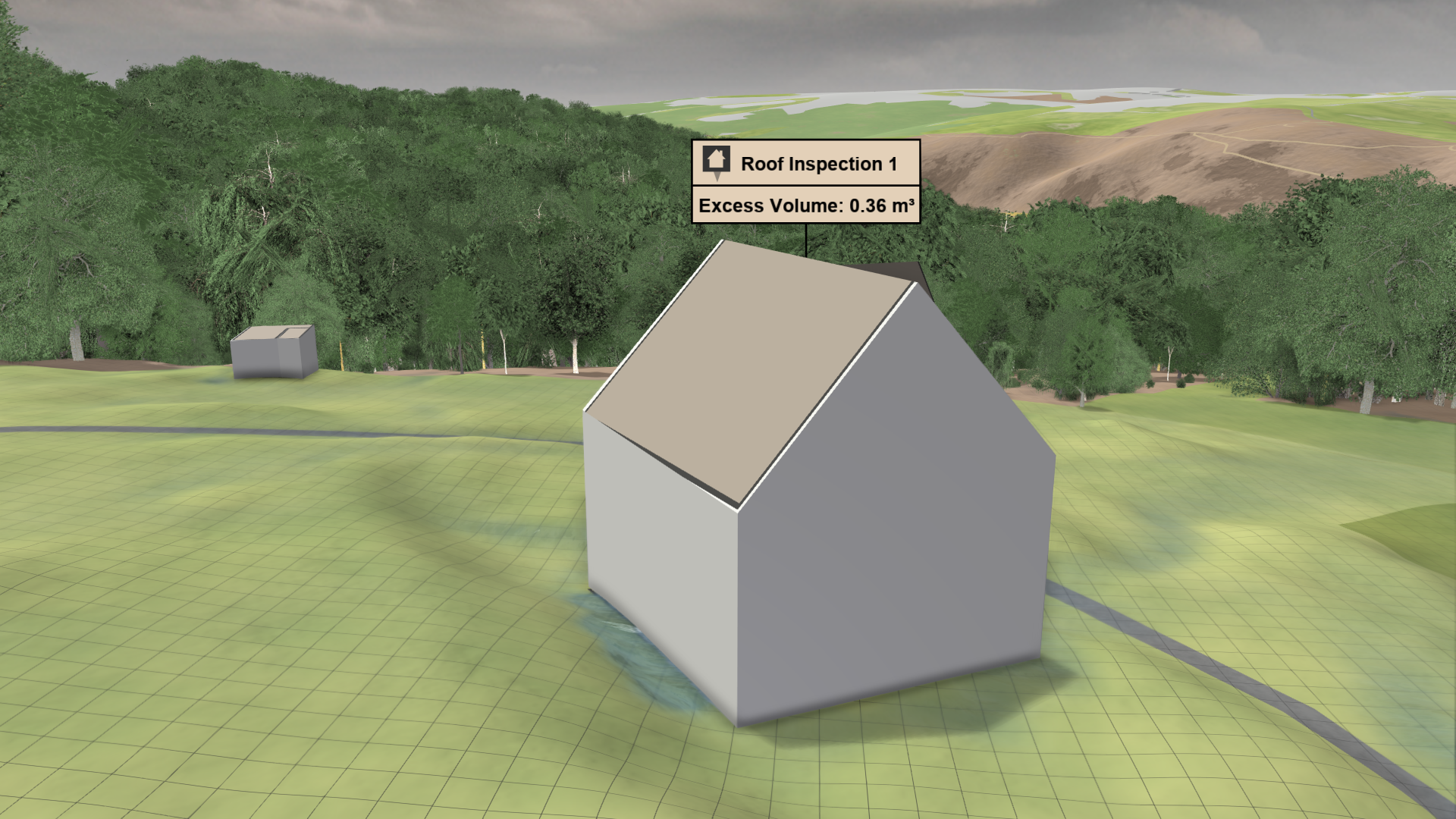 A label displaying the inspected data values for the roof can be shown. The data to inspect can be selected in the Labels section of the Action Tool Panel.