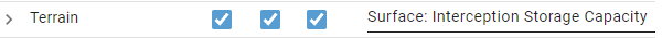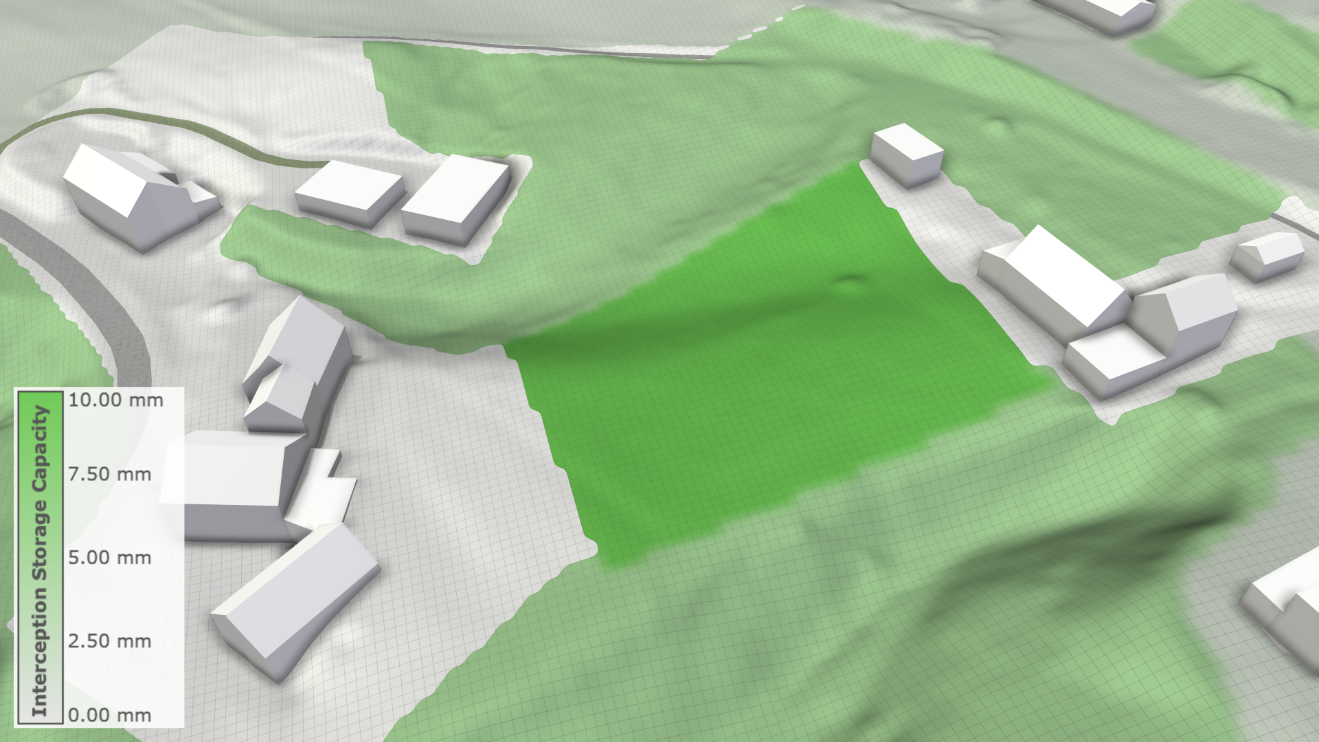 There is a terrain visualization for interception available. It can be activated through the Visualization Settings Panel, in the Layers: Visualization category. To do so, enable the terrain layer and color it using the Surface: Interception Storage Capacity property.