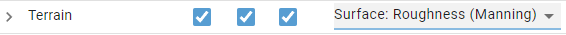 In the Visualization Settings Panel, under the Layers: Visualization category, users can color the terrain based on roughness coefficients. You can visualize Gauckler–Manning coefficients or Strickler coefficients.