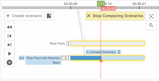 - Select two scenarios you want to compare and choose Comparing Scenarios from the Multi-Scenario Operations Menu that appears in yellow (for more than two scenarios select Combining Scenarios).