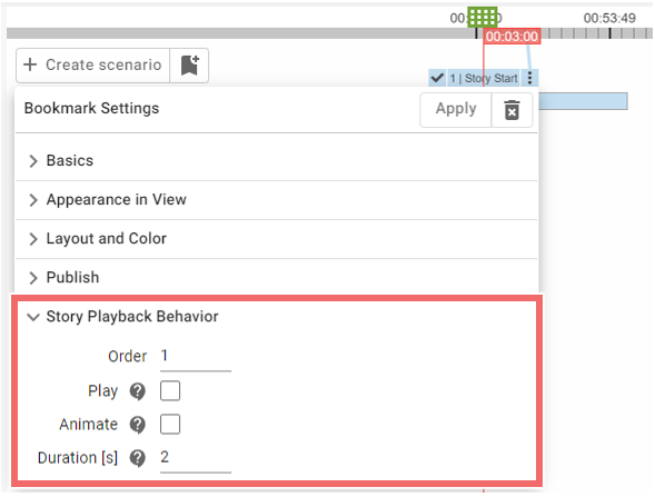 The playback behavior of a story bookmark can be customized in the bookmark settings.
