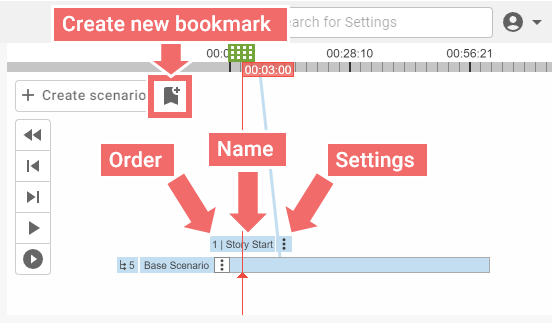 - Play: If enabled, plays the scenario until the next bookmark in the same scenario.
